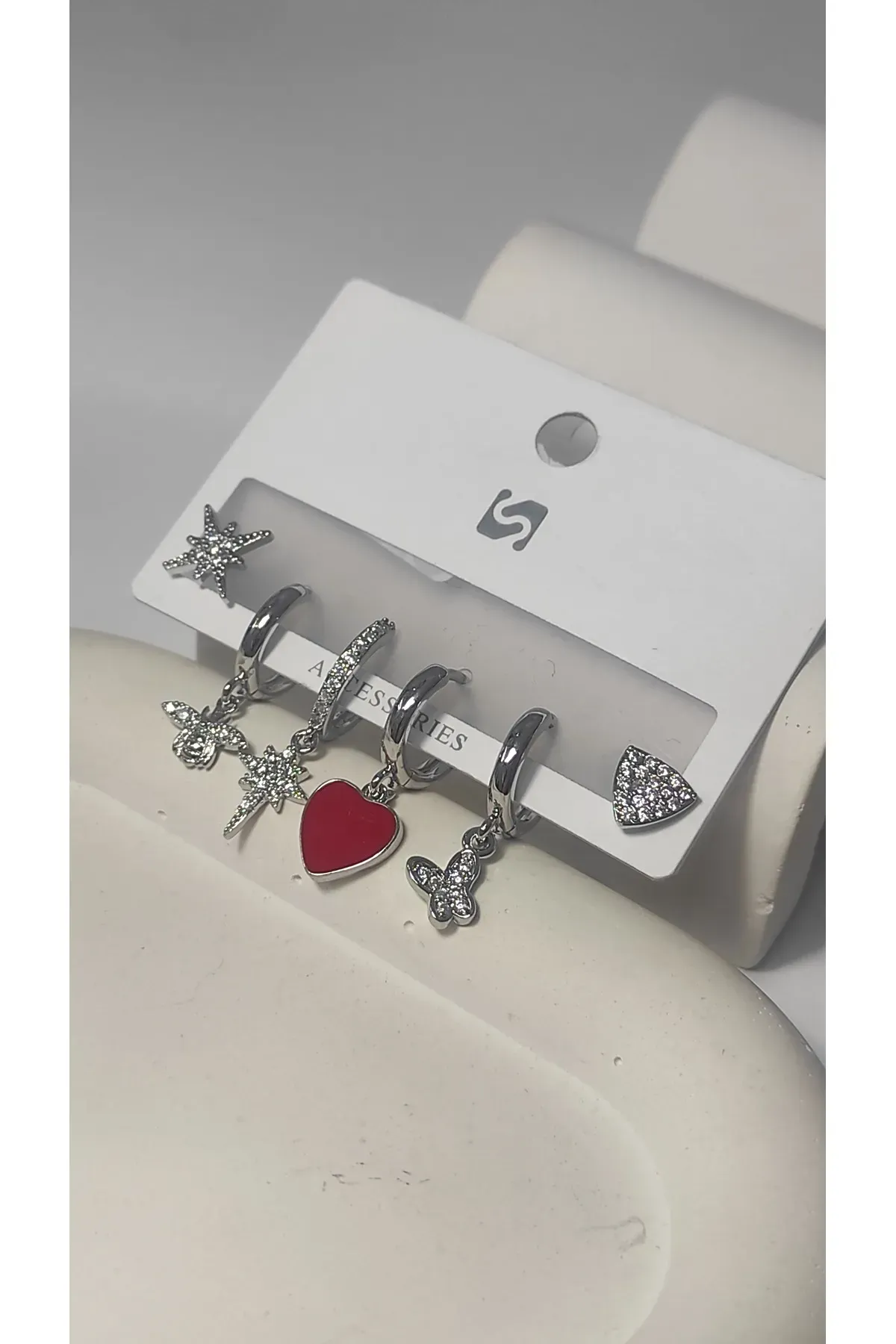 Bijuteri Gümüş Taşlı Çoklu Metal Kadın Küpe Jewelry